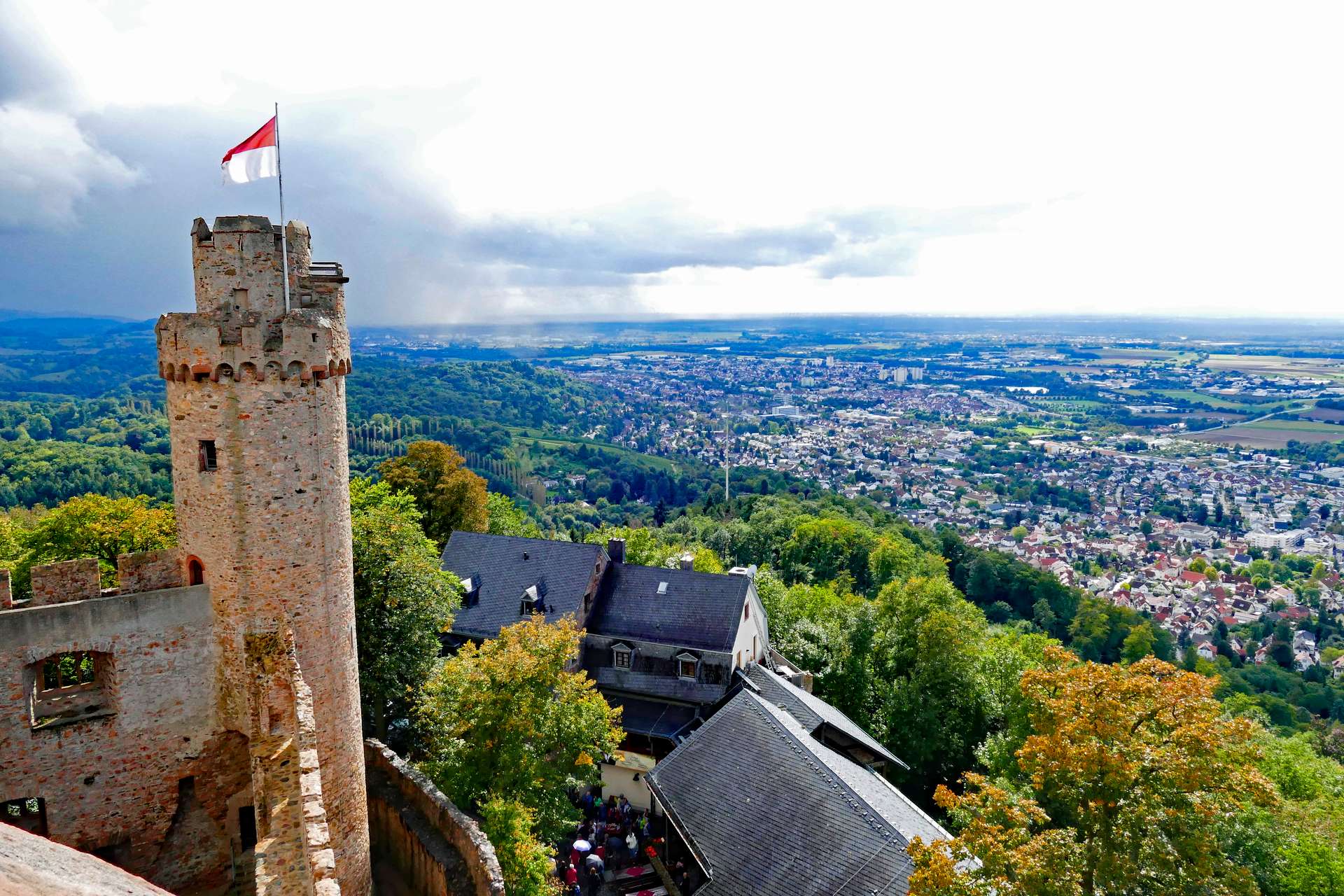 Die einstmals größte und wichtigste Burg an der Bergstraße verbreitet noch immer eine besondere Würde. Schloss Auerbach thront hoch über dem Westhang des Odenwaldes. Das Panorama von den beiden Türmen ist atemberaubend: Sie blicken über die Bergstraße, den Vorderen Odenwald und die gesamte Rheinebene.