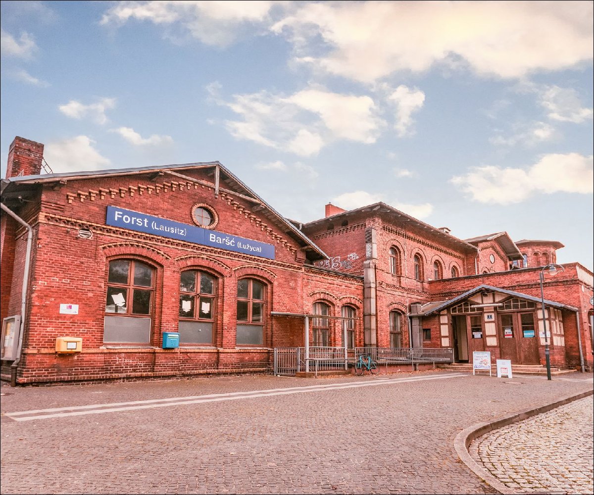 Der Forster Bahnhof ist ein geschütztes Baudenkmal und ist ein Grenzbahnhof nach Polen. Das Empfangsgebäude beinhaltet eine Reiseshop mit ausgewählten Souvenirs.