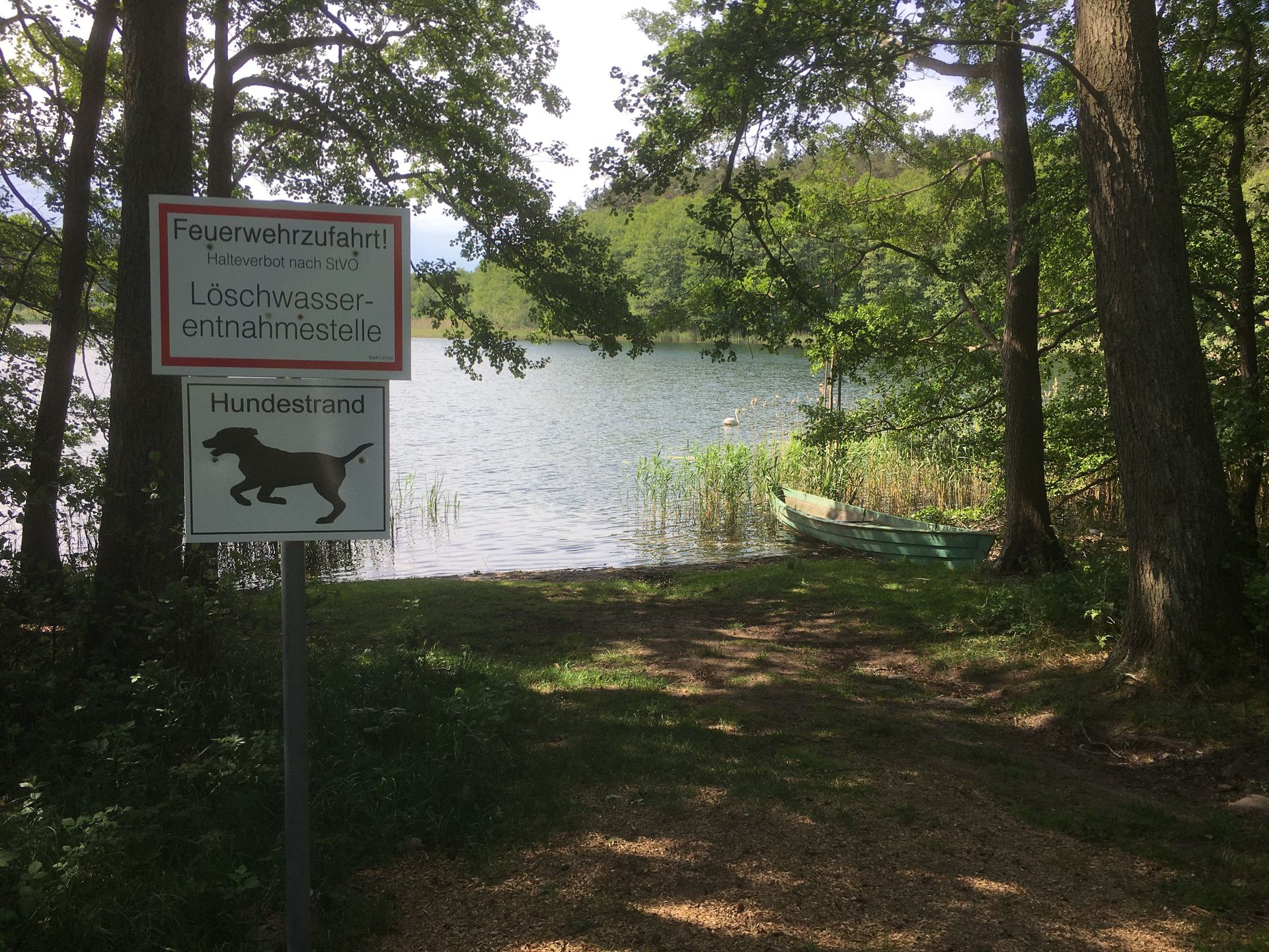 Hundebadestelle am Großen Kastavensee bei Retzow. Die Hundebadestelle liegt direkt neben der offiziellen Badestelle. Parkflächen und Sitzmöglichkeiten sind vorhanden.
