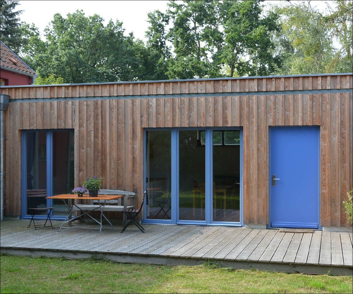 Bettwäsche, Handtücher, Dusche, WC, Doppelbett, Boot, Liegewiese, Terrasse, Gartenmöbel, Herd, Wasserkocher, Kamin, Feuerschale im Garten, direkter Wasserzugang, Unterstellplatz für Fahrräder, Reitmöglichkeit, ökologische Bauweise, Nichtraucher, ganzjährig