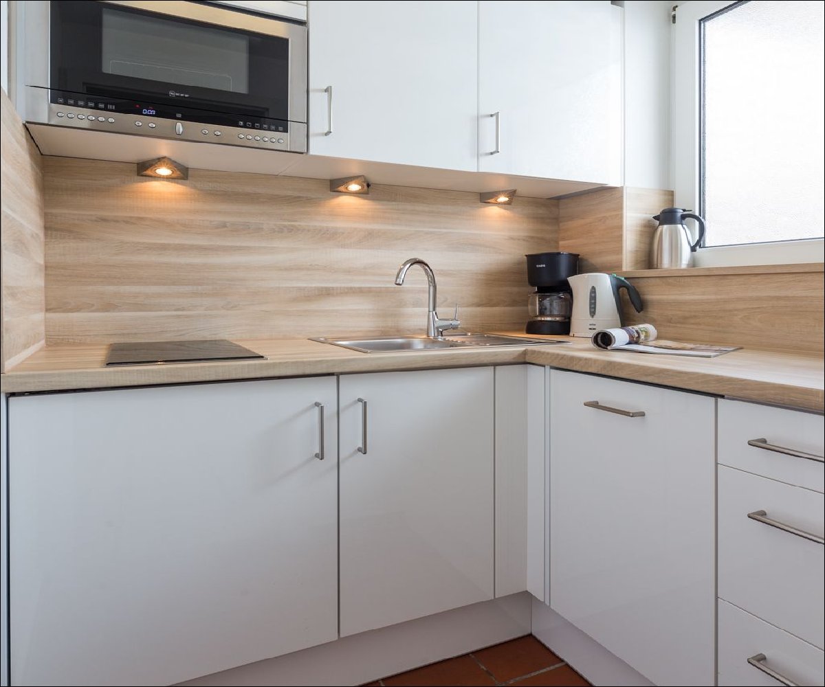 Auf den 53 qm der Ferienwohnung Kätemöh im Haus Bracht auf Juist fühlen sich bis zu 4 Personen pudelwohl. Das schmucke 2-Zimmer-Appartement trumpft mit einem separaten Schlafzimmer mit Boxspringbett und Etagenbett auf. Freut euch auch auf ein Wohnzimmer mit ausklappbarem Schlafsofa, Küchenzeile (mit Mikrowelle, Geschirrspüler, etc.) und Zugang zu nicht nur einer, sondern zwei Terrassen! Auch ein Badezimmer mit Fenster und ein separates Gäste-WC fehlen nicht.