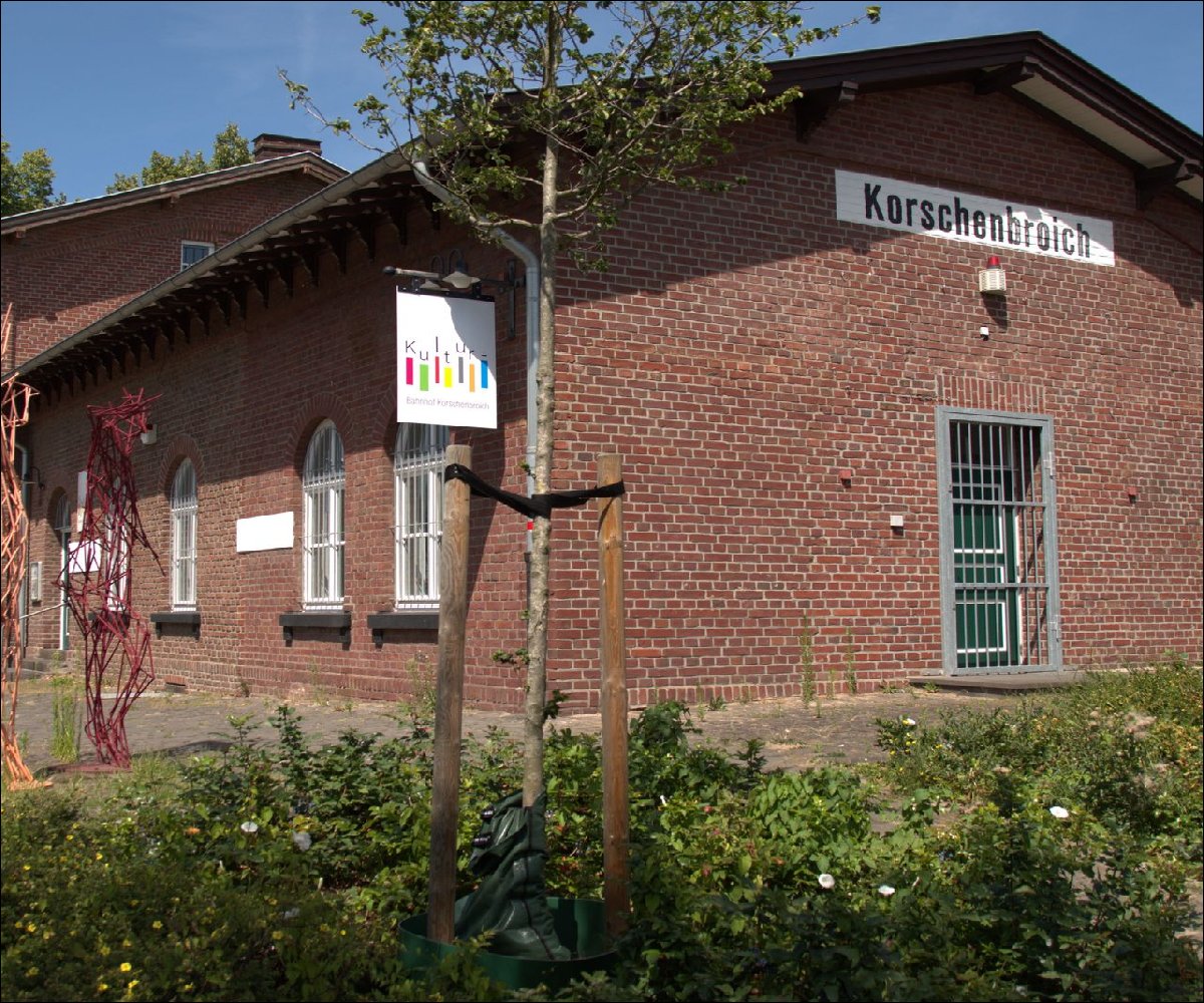 Das ehemalige Bahnhofsgebäude aus dem 19. Jahrhundert wurde Anfang der 2000er Jahre umgebaut und bietet seit August 2005 Raum für Ausstellungen und Veranstaltungen. Träger des dort ansässigen Heimatmuseums ist der Heimatverein Korschenbroich e.V. Eine Dauerausstellung präsentiert alte Handwerksberufe und seine Werkzeuge, Kinder-Spielsachen, landwirtschaftliche Kleingeräte, häusliche Einrichtungsgegenstände der ländlichen Bevölkerung und Ausstattungen von Bahnhof und Bahnpersonal. Kunstausstellungen, Kleinkunst-Veranstaltungen, Lesungen, Liederabende und Vorträge runden das heimatbezogene Angebot ab. Im Erdgeschoss des Gebäudes befindet sich außerdem ein Café, das zum Verweilen einlädt.