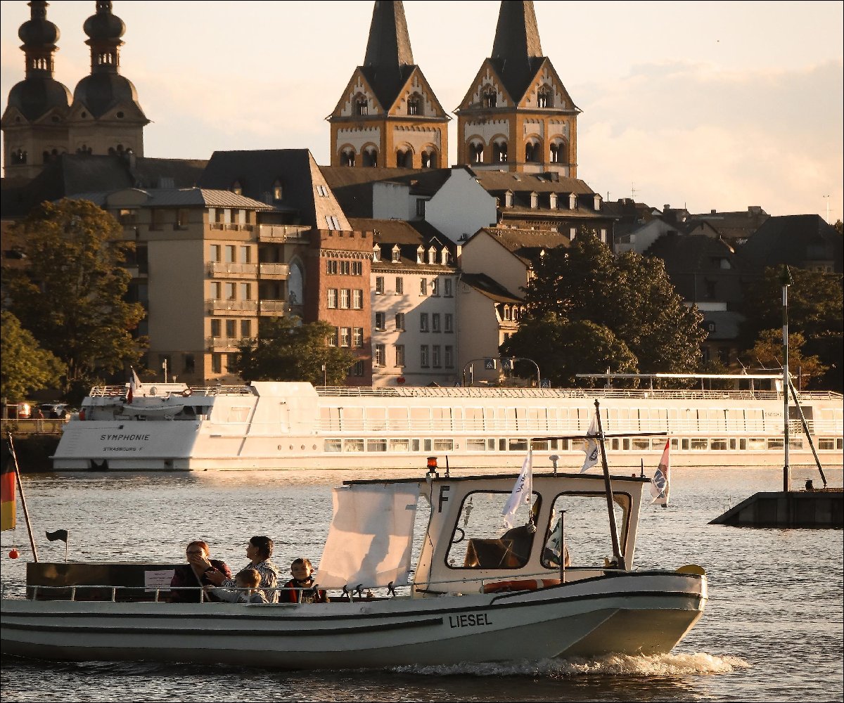 Von April bis Oktober fährt die Fähre „Liesel“ zwischen dem KNAUS Campingpark Rhein/Mosel gegenüber dem Deutschen Eck zum Moselanleger am Peter-Altmeier-Ufer am Biergarten.