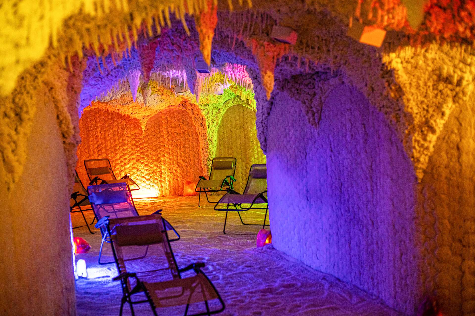 Wer mag, kombiniert seine Auszeit in der Spessart Therme mit einer Auszeit in der 4-Sterne-Sauna am Kurpark – einmal im Monat während der Spätschicht sogar bis 1.30 Uhr – oder einer Wellnessmassage oder Beautyanwendung im WellVitamed. Im einzigartigen „Meeresklima“ der Totes-Meer-Salzgrotte lässt es sich wunderbar eine Dreiviertelstunde verschnaufen. Hier heißt es tief durchatmen, den Alltag hinter sich lassen und entspannen. Für Kinder gibt es übrigens eine separate Grotte, in der Inhalieren zum Kinderspiel wird – denn in der Familiengrotte darf gerne gelesen und gespielt werden.
