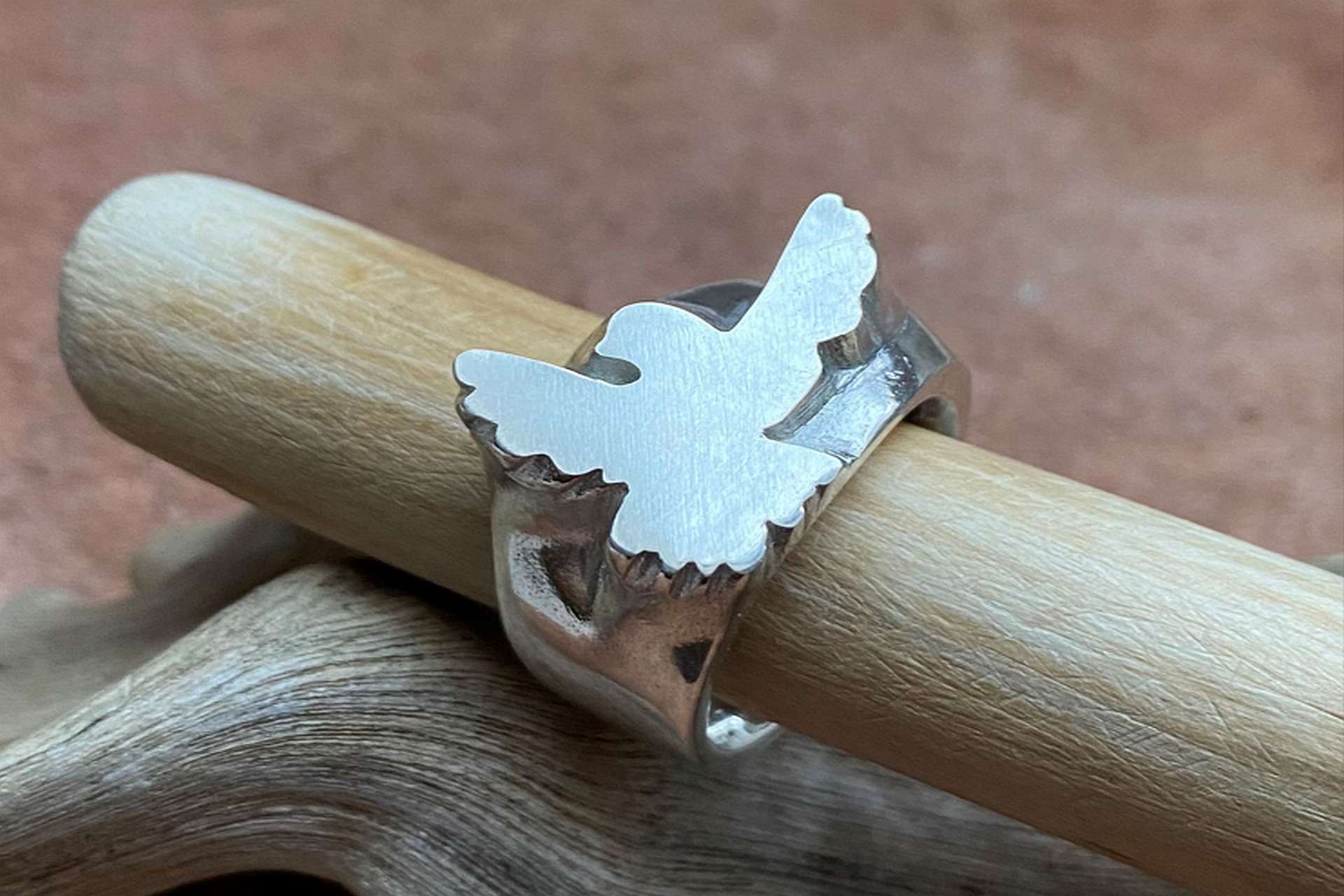 Auf den selbstgefertigten Ring aus Silberblech werden Buchstaben aus Silberdraht aufgelötet. So wird jeder Ring mit dem eigenen Wunsch-Statement zum Lieblingsstück.