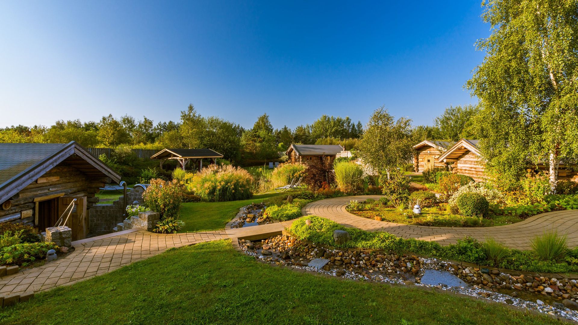 Für eine Erfrischung können Gäste zwischen dem Kalttauchbecken, dem Whirlpool oder dem großen beheizten Außenbecken wählen. Verschiedene Ruheräume sowie ein weitläufiger Saunagarten mit zahlreichen Liegewiesen, dem Goldfischteich und Bachlauf laden zum Entspannen an der frischen Luft ein. Verschiedene Massagen und Kosmetikbehandlungen wie Chinesische Fußmassage oder Gesichtsbehandlung mit Hauttest-Analyse runden das Angebot ab. Stärken können sich Besucher im hauseigenen Restaurant.